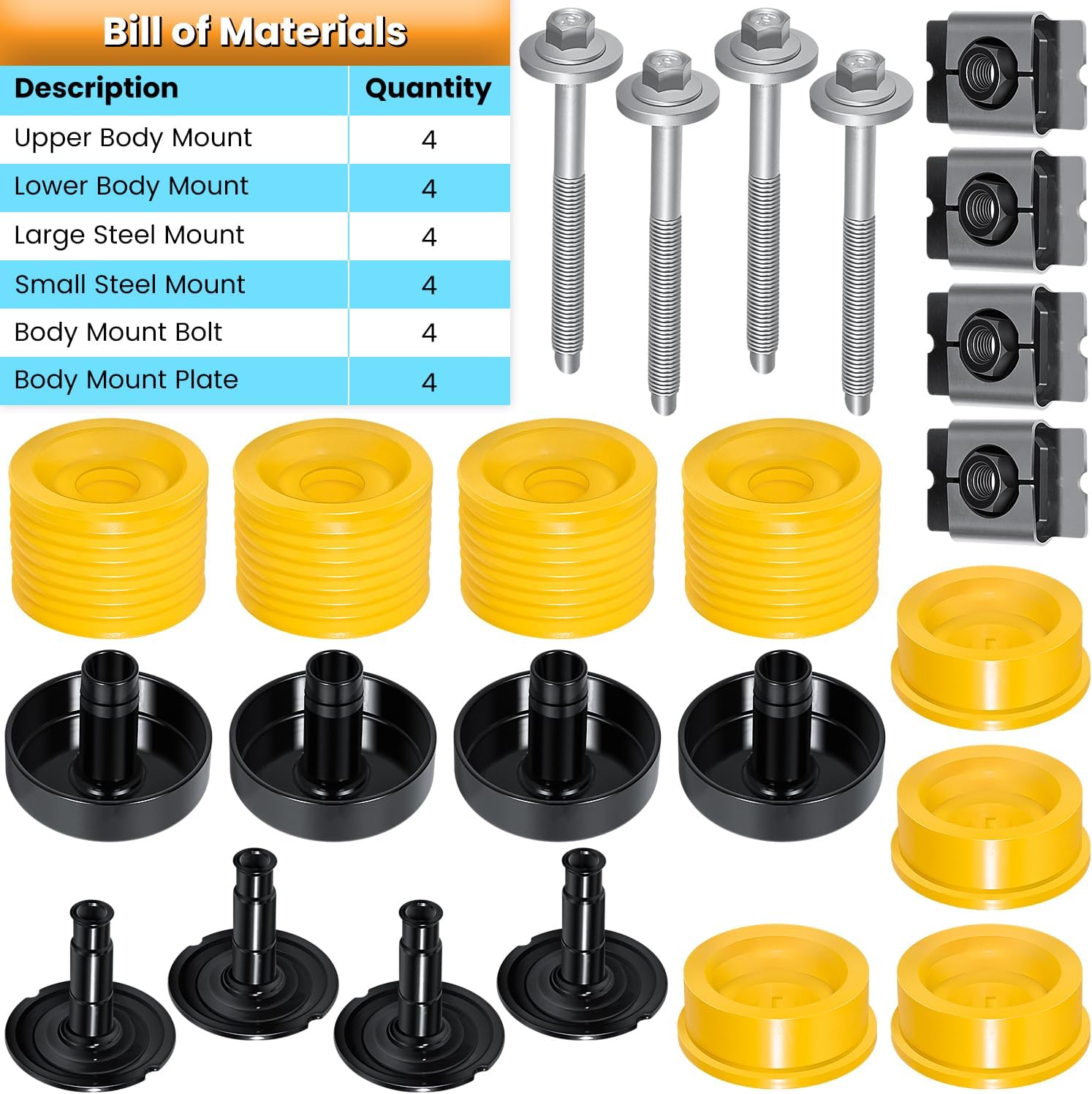 | Included Components | Body Cab Mount Bushing Kit |
