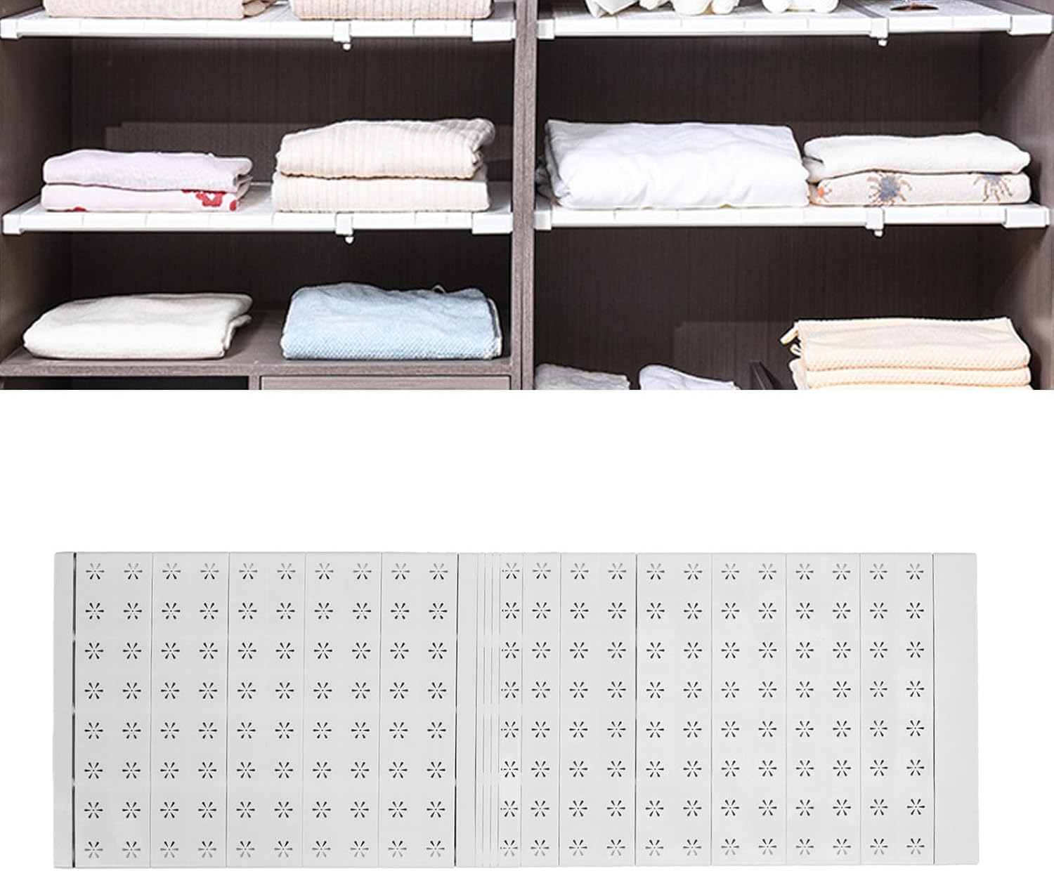 1. Premium Material: Made of premium steel pipe, ABS, and PP materials, this closet tension shelf is sturdy, capable of bearing multiple items, and can be used for a long time. 2. Adjustable Design: The closet tension shelf can be freely adjusted in length to accommodate different sizes of items, maximizing the use of space, convenient and practical. 3. No Drill Installation: No need for drilling, the expandable closet storage rack is easy to install without damaging the wall, convenient for movement and . 4. Exquisite Appearance: With a simple and modern style, this expandable closet tension shelf combines practicality and aesthetics, adding more character to your home. 5. Multifunctional Design: Suitable for closets, cabinets, wardrobes and bathrooms, effectively dividing storage space and making item organization more convenient. Spec: Item Type: Closet Tension Shelf Material: Steel Pipe, ABS, PP Width: Approx. 42cm/16.5in Load Bearing Capacity: 0 to 20kg Package List: 1 Set x Closet Tension Shelf (9 Pieces) or 1 Set x Closet Tension Shelf (12 Pieces) or 1 Set x Closet Tension Shelf (14 Pieces)