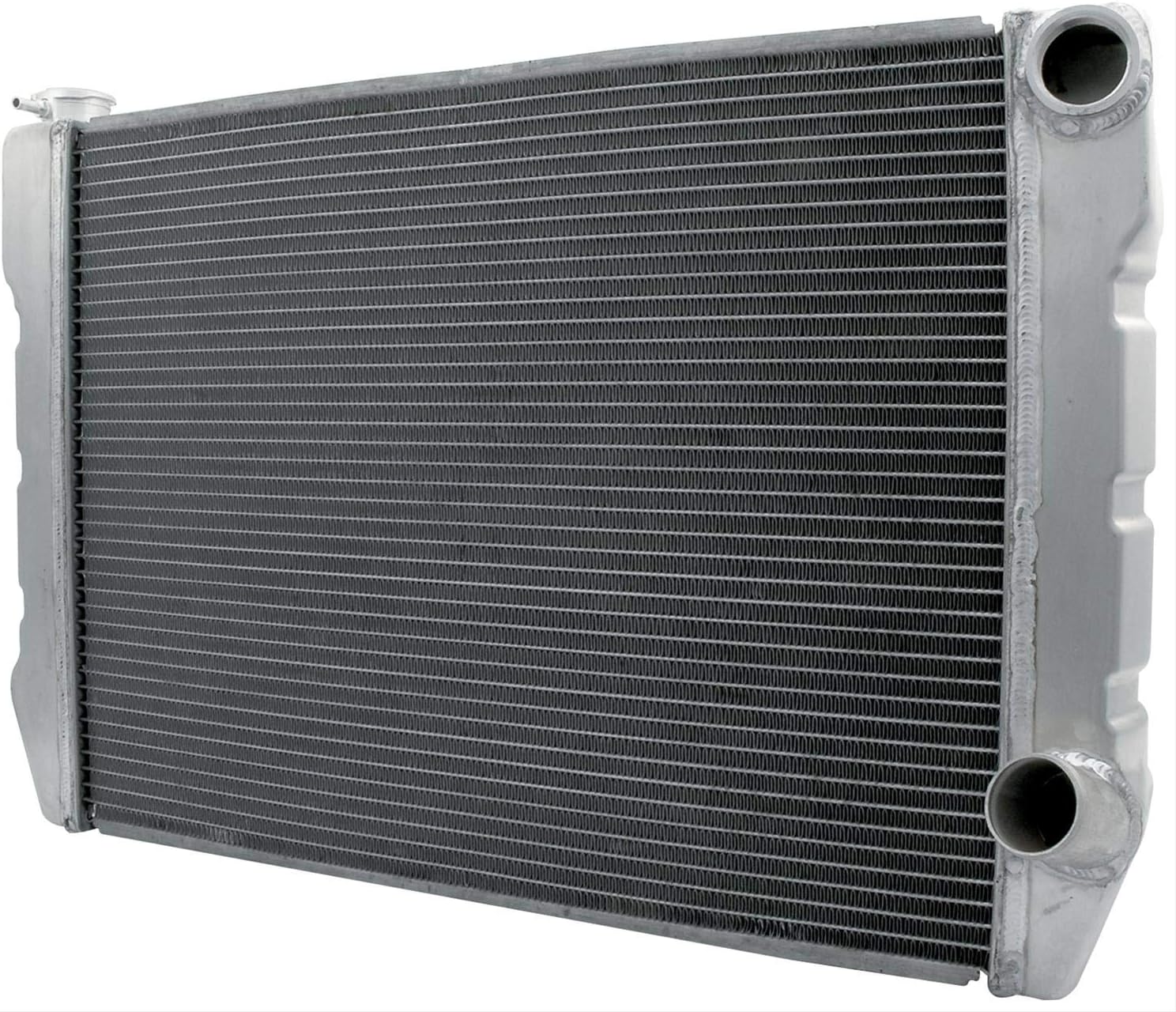 Dual pass radiators circulate coolant across the top half of the radiator, then back across the bottom half, allowing up to twice the heat dissipation. These radiators offer the same features as standard Allstar aluminum radiators including furnace brazed tanks, two rows of 1" tubes, billet machined filler neck with overflow, standard 1-3/4" outlet and feature a universal inlet design to accept fittings for a 1-1/2" standard hose, 1-3/4" hose, -16 or -20AN fittings (sold separately). Available in 24", 26", 28" and 31" overall widths (including tanks).