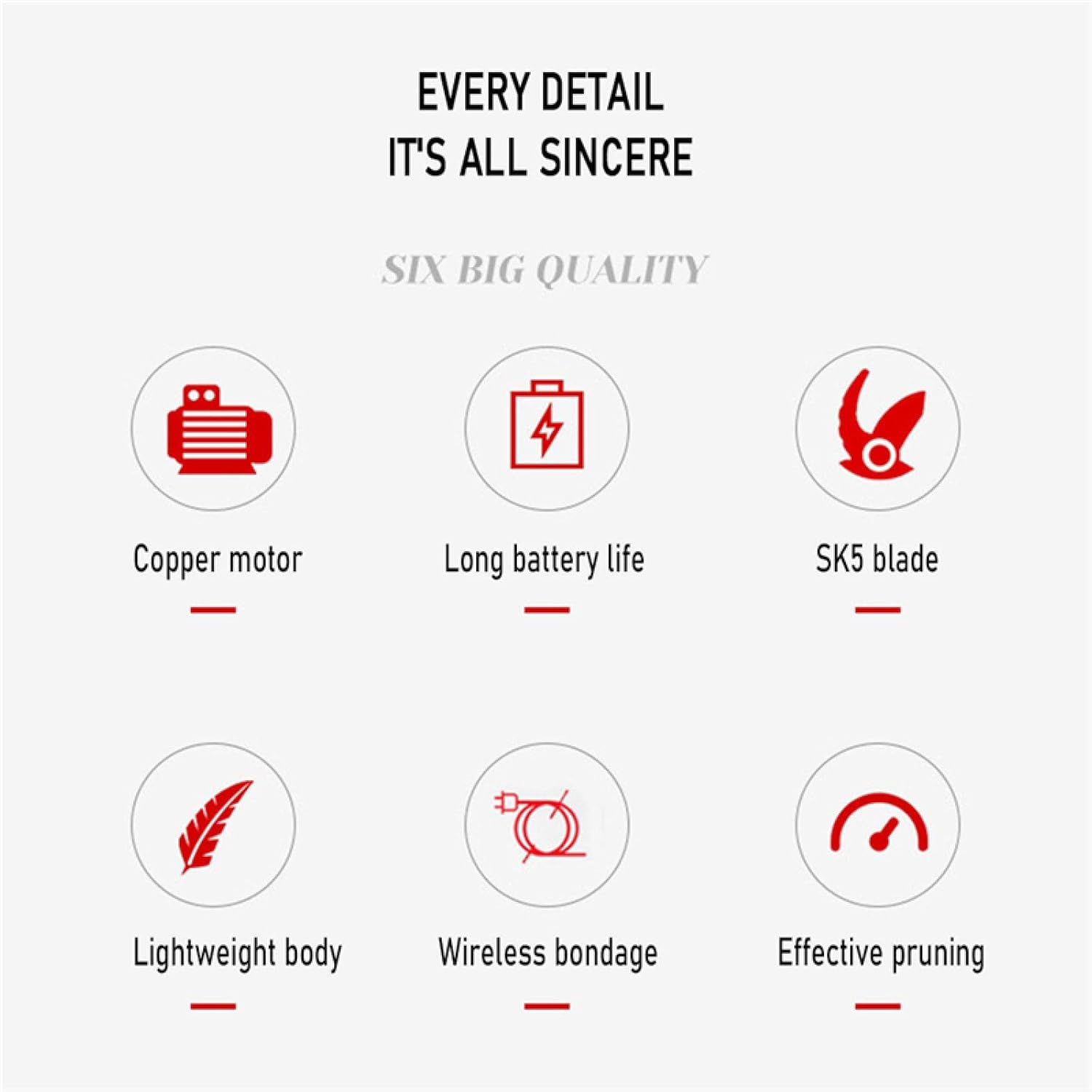 Cordless Pruner Battery Electric Pruning Shear Efficient Fruit Tree Bonsai Garden Electric Scissors Branches Cutter Power Tools Description: Name: Cordless Pruning Shears Color: Black Battery: 21V 2000mAh Charging Voltage: 110-220V Size: 252*91*55mm/9.92*3.58*2.17in Max. Cutting: 30mm Working Temperature: -10℃~60℃ Features: 1. Cordless rechargeable pruning shears for cutting and trimming branches in fruit orchards, vineyards. 2. blade, made of tungsten steel, durable. 3. 2000mAh capacity rechargeable lithium battery for cordless use. 4. Ergonimic and comfortable handle. 5. Low noise, good fatigue resistance. 6. Flexible in use,easy to turn, safe and reliable, easy to maintain, convenient to replace battery and operate. 7. The pruning quality can meet the requirements of horticulture. ★ Due to the difference between different monitors, the picture may not reflect the actual color of the item. We guarantee the style is the same as shown in the pictures.Please understand, thank you!