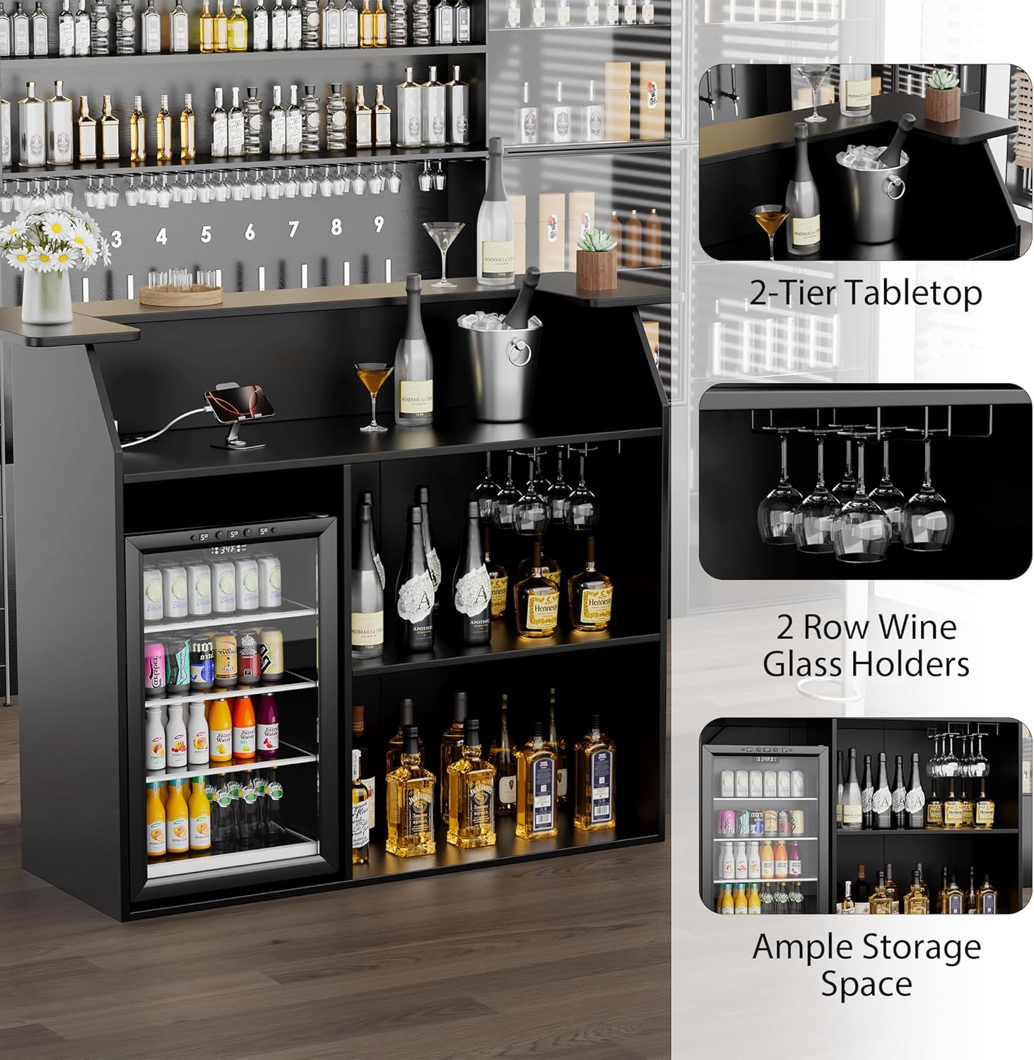 | Additional Features | Power Outlets,Glass Holder,Wine Rack,Mini Fridge Space, Drawer |