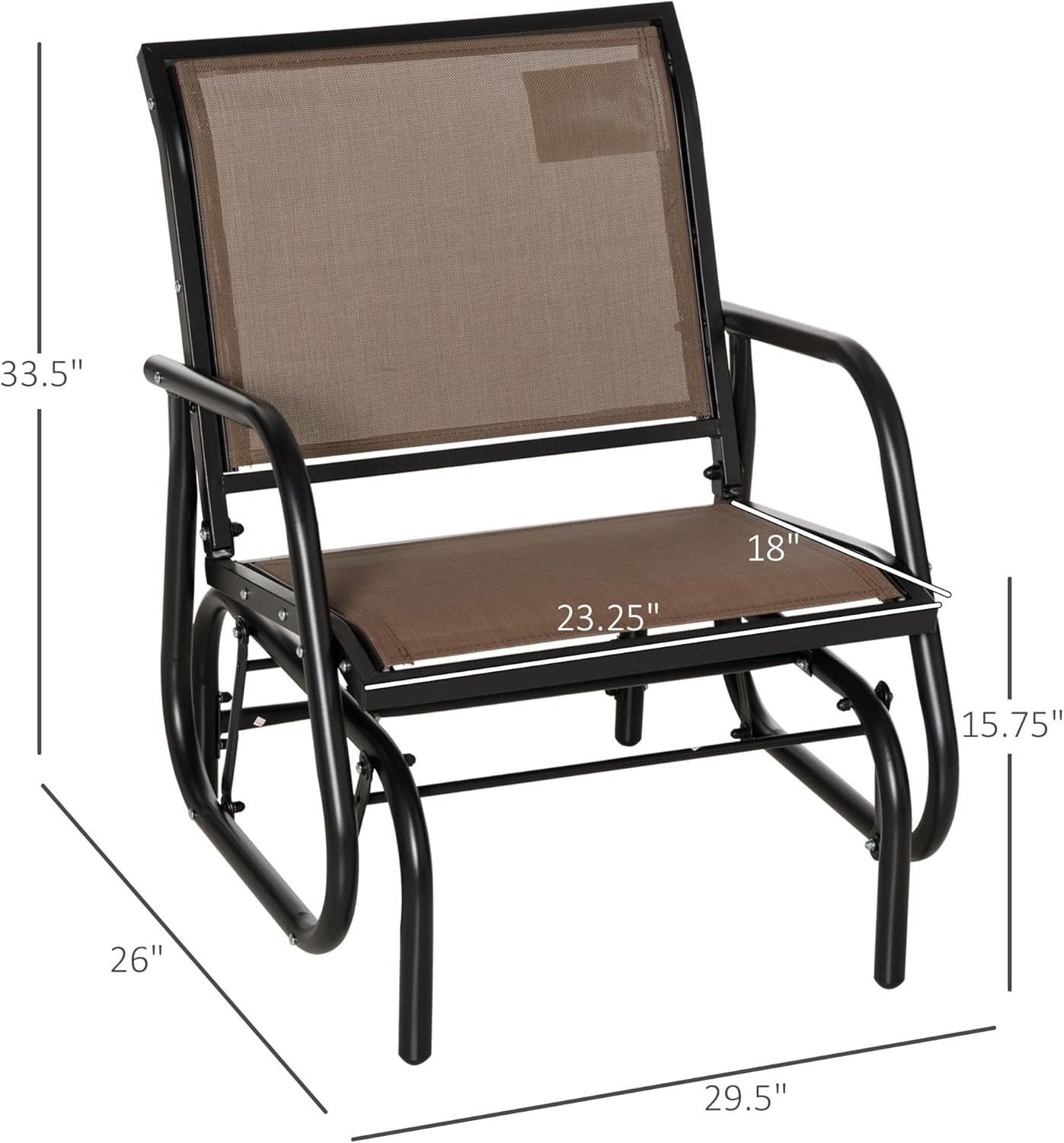 This Outdoor Patio Glider offers a comfortable gliding motion with a breathable mesh seat and backrest, designed for outdoor use. Featuring a strong steel frame with powder-coated finish, it supports up to 264 lbs and is suitable for patios, balconies, and gardens. The mesh fabric dries quickly and resists fading, ensuring long-lasting style and comfort.