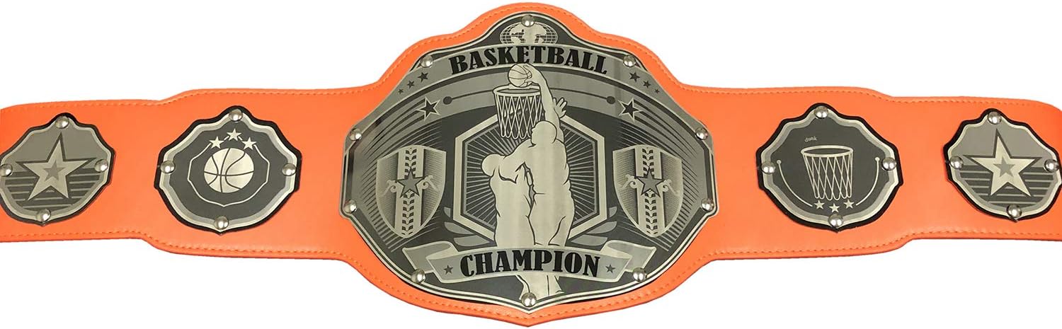 Add your own custom text to our basketball themed championship belt. 55" Length will fit around anyone's waist or shoulder Main plate is 11" x 9". Side plates are 4" x 4" End plates are 3.5" x 3.5" Main plate and all side buckles made of real metal. No PLASTIC Straps are made of high quality synthetic leather with button snaps. After purchasing message us what you'd like the top and bottom banners to say. Black strap and gold plate is default. If you'd like another color let us know when you message us as well. Options are: Straps: Black, White, Blue, Red, Green, Orange, Light Brown, Brown, Purple, Yellow, Pink Plates: Gold, Black, Silver Production can be done within 3-4 business days!