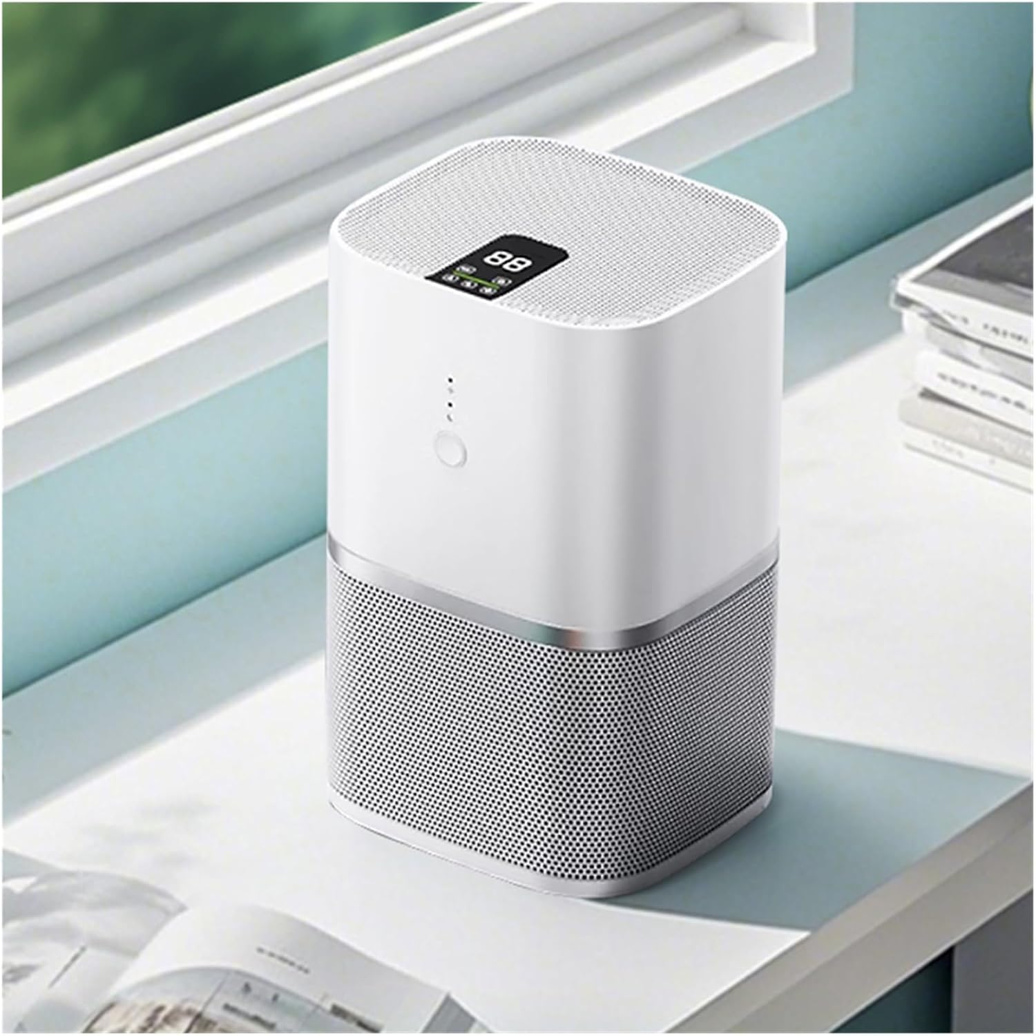 This desktop air purifier features a HEPA filtration system designed for indoor environments. The compact unit measures 16x16x263 cm with a lightweight design that makes it suitable for placement on desks, tables, or other surfaces in home and office settings. With a particulate CADR of 40m3/h and gaseous CADR of 50m3/h, this purifier operates quietly at 35-50dB noise levels while consuming only 4W of power. The device features touch control operation and is constructed from durable plastic materials in a clean white finish. Operating on DC 5V 1A power with an estimated 15000-hour operational life, this air purifier meets CB certification standards and includes English language interface for easy operation. The desktop installation requires no complex setup, making it ready for immediate use in various indoor spaces.