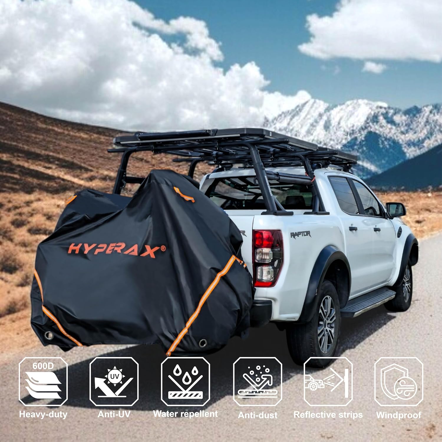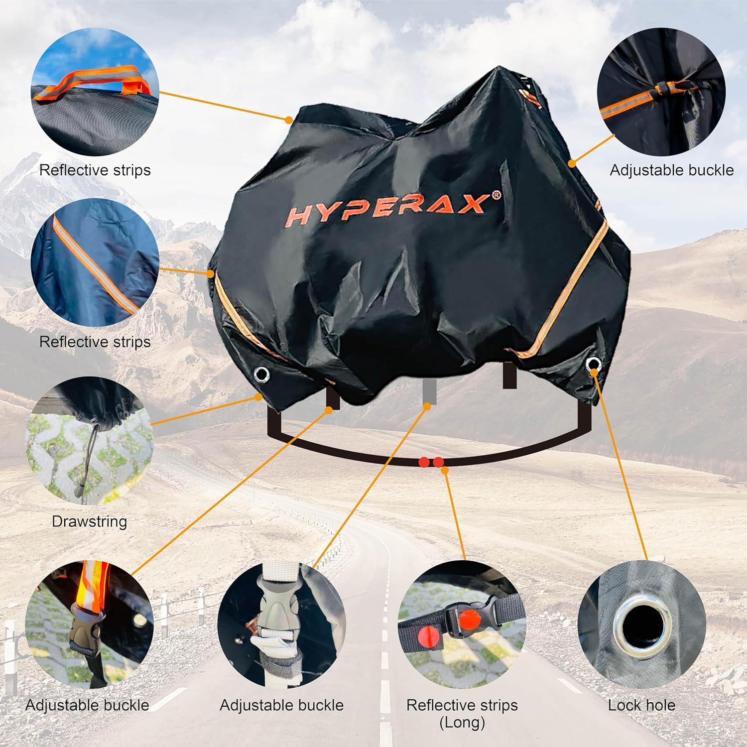 Protect your bicycle investment with the Hyperax Heavy-Duty Bicycle Cover, engineered for riders who demand reliable, long-lasting protection in any environment. Crafted from rugged 600D Oxford fabric with a waterproof PU coating and a soft interior lining, this cover shields against rain, snow, UV rays, dust and scratches. Its comprehensive fastening system—featuring reinforced Terylene straps, quick-release buckles and Velcro storage straps—secures the cover firmly, even on windy days, while built-in grommets accommodate bike locks without compromising coverage. High-visibility reflective handles and tape straps make it easy to slip the cover on or off after dark, and the integrated carry bag ensures the entire system stows neatly when not in use. Measuring 240 cm long × 145 cm high × 105 cm wide, it fits a wide range of bicycles, from road and mountain bikes to e-bikes and folding models. Whether you’re parking outdoors, storing in the garage, or displaying in a retail setting, the Hyperax Bicycle Cover delivers premium protection, convenience and peace of mind.